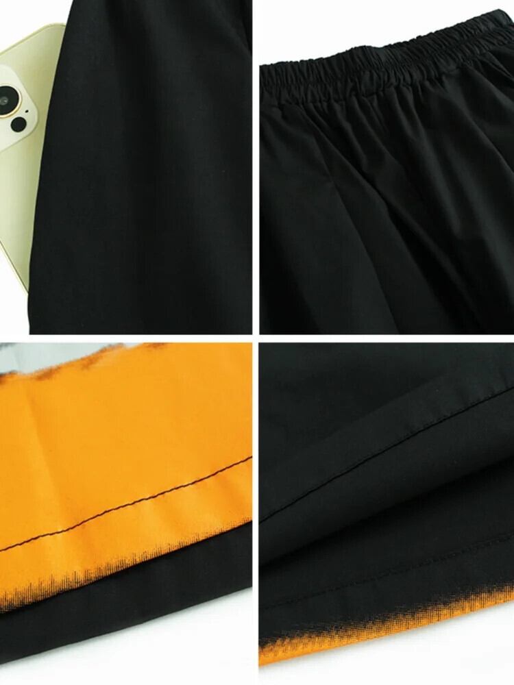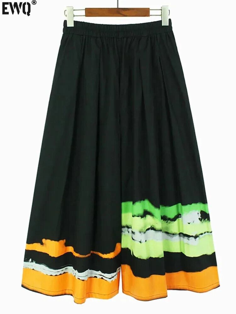[EWQ] コントラストカラー弾性ウエストバンドワイドレッグパンツビッグサイズクロップドパンツ 2024 春秋 U7215 エラスティック 伸縮 スプリング 春物 オータム 秋物 ワイドパンツ