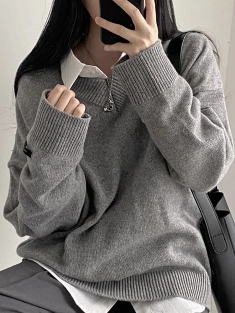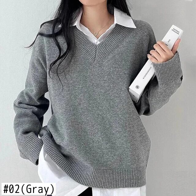 [EWQ] シック V ネックルーズニットセーターミニマリストオールマッチ長袖トップ 2024 春秋 6U7107 ロング スプリング 春物 オータム 秋物 Vネック