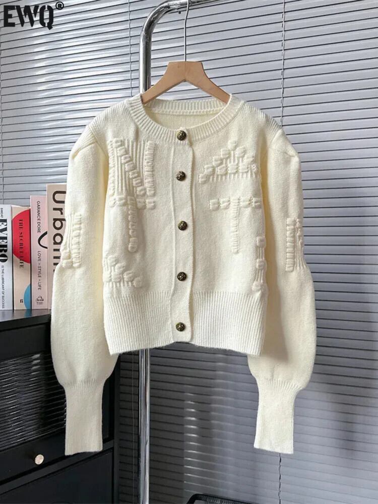 [EWQ] Oネック シングルブレスト 立体レタード ニット カーディガン セーター レディース トップス 秋冬 16U6885 オータム 秋物 ウィンター 冬物
