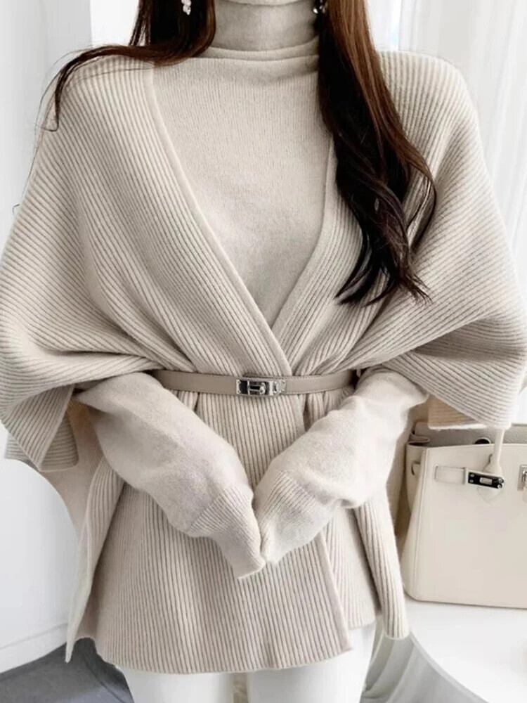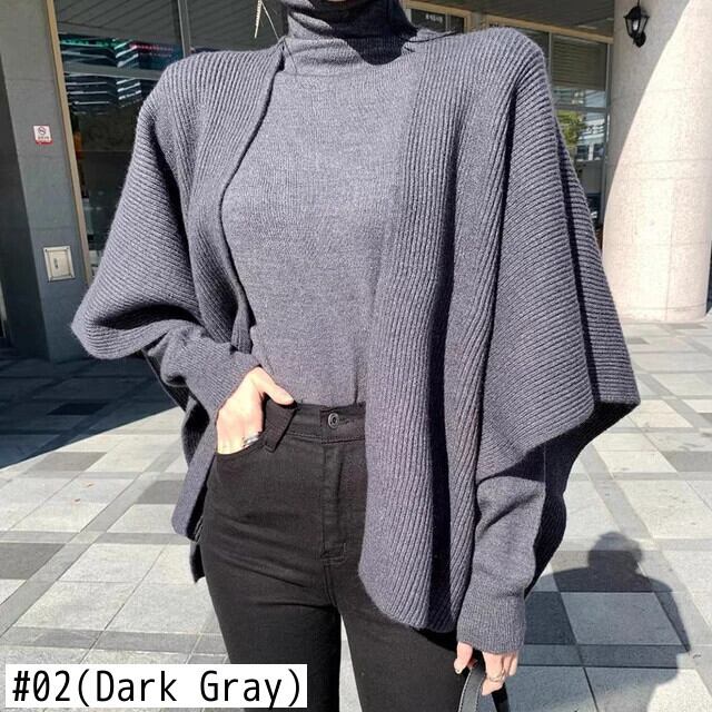[EWQ] タートルネックセーターゆったり万能ショールニットコート秋冬厚手 16U5284 オータム 秋物 ウィンター 冬物
