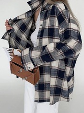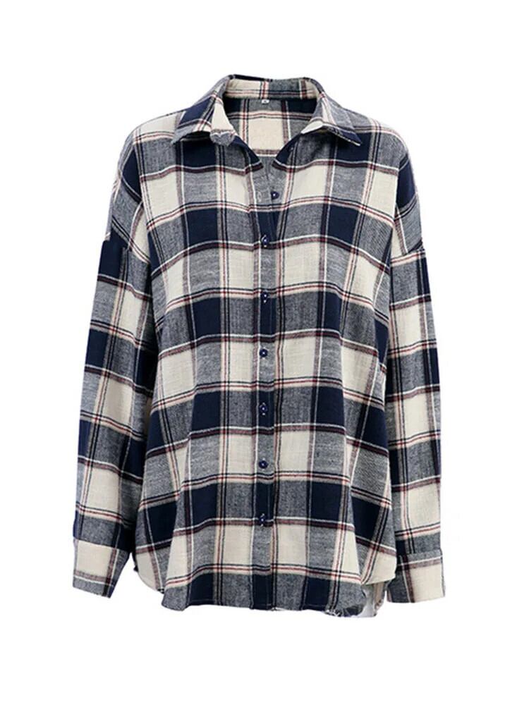[EWQ] ルーズチェック柄ラペルシングルブレストシャツコントラストコットンレディースミディアム丈ブラウス2024春秋16U7371 スプリング 春物 オータム 秋物
