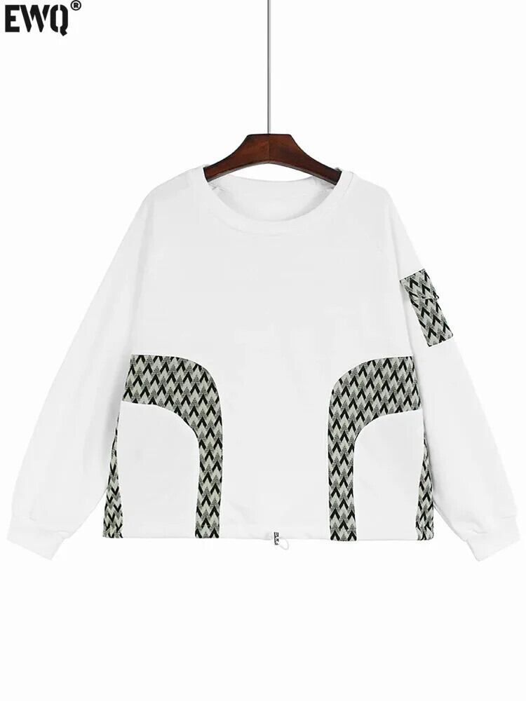 [EWQ] コントラスト ポケット O ネック プルオーバー 長袖 トレーナー ルーズ オールマッチ トップ レディース 2024 春秋 16U7204 ロング スプリング 春物 オータム 秋物 Oネック