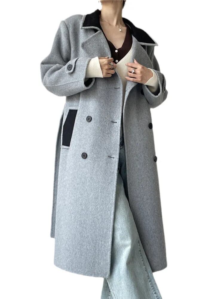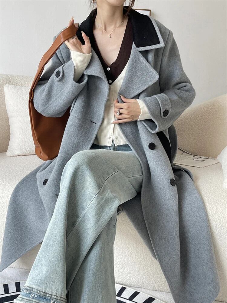 [EWQ] ラペルコントラストカラー 両面ウールコート レディース アウター 秋冬 16U6679 オータム 秋物 ウィンター 冬物