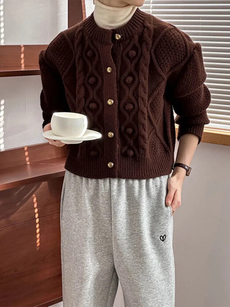 [EWQ] O ネック シングルブレスト ニット トップス ベージュ コーヒー グリーン カーディガン 暖かい セーター ニット 2024 春夏 16U7083 スプリング 春物 ウィンター 冬物 Oネック