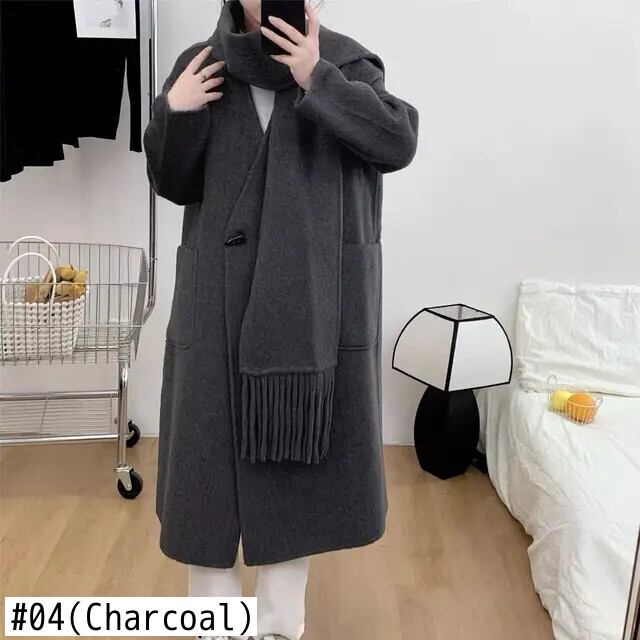 [EWQ] 気質アップ チェック柄 スカーフ ウールコート レディース ウール 両面カシミヤ アウター 2024春夏 16U7070 スプリング 春物 ウィンター 冬物