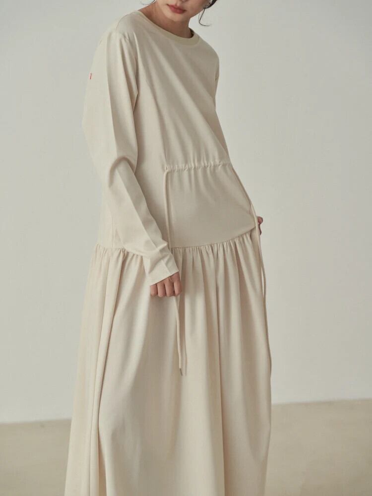 [EWQ] チャイナスタイル巾着プリーツソリッドカラープルオーバードレスルーズ O ネックロングドレス 2024 春秋 6U7354 スプリング 春物 オータム 秋物 Oネック