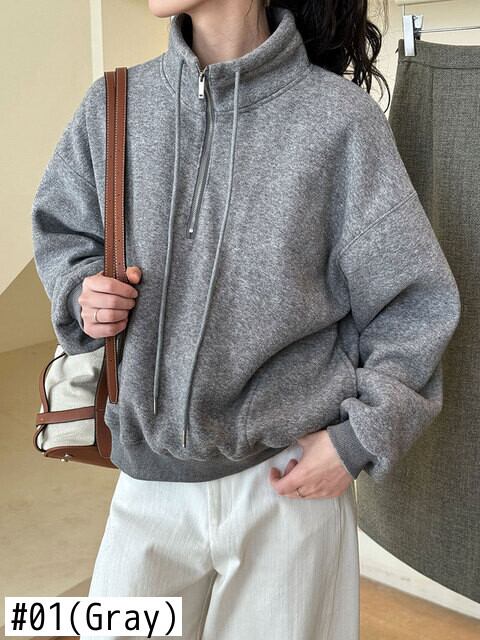 [EWQ] スタイル肥厚スタンドネックプルオーバースウェットシャツショート巾着トップ 2024 春秋 16U7271 スプリング 春物 オータム 秋物