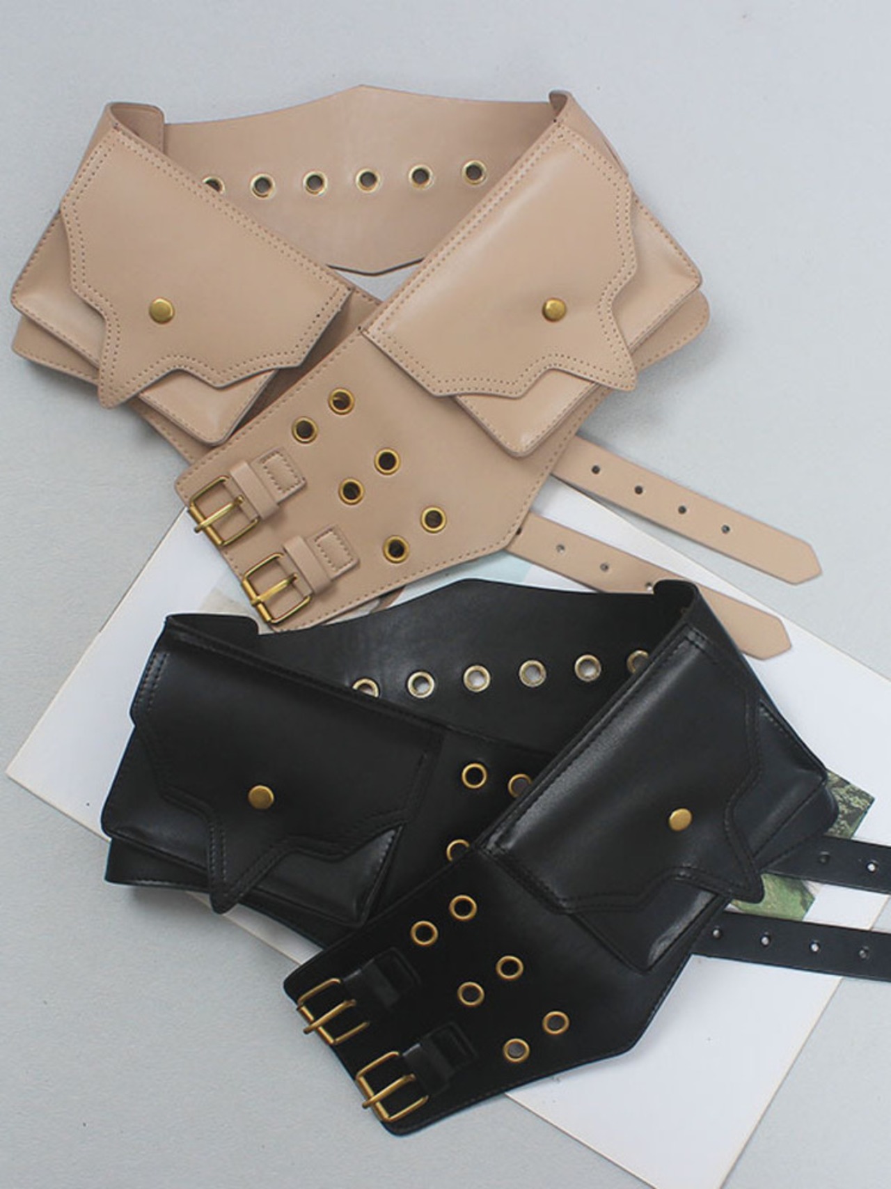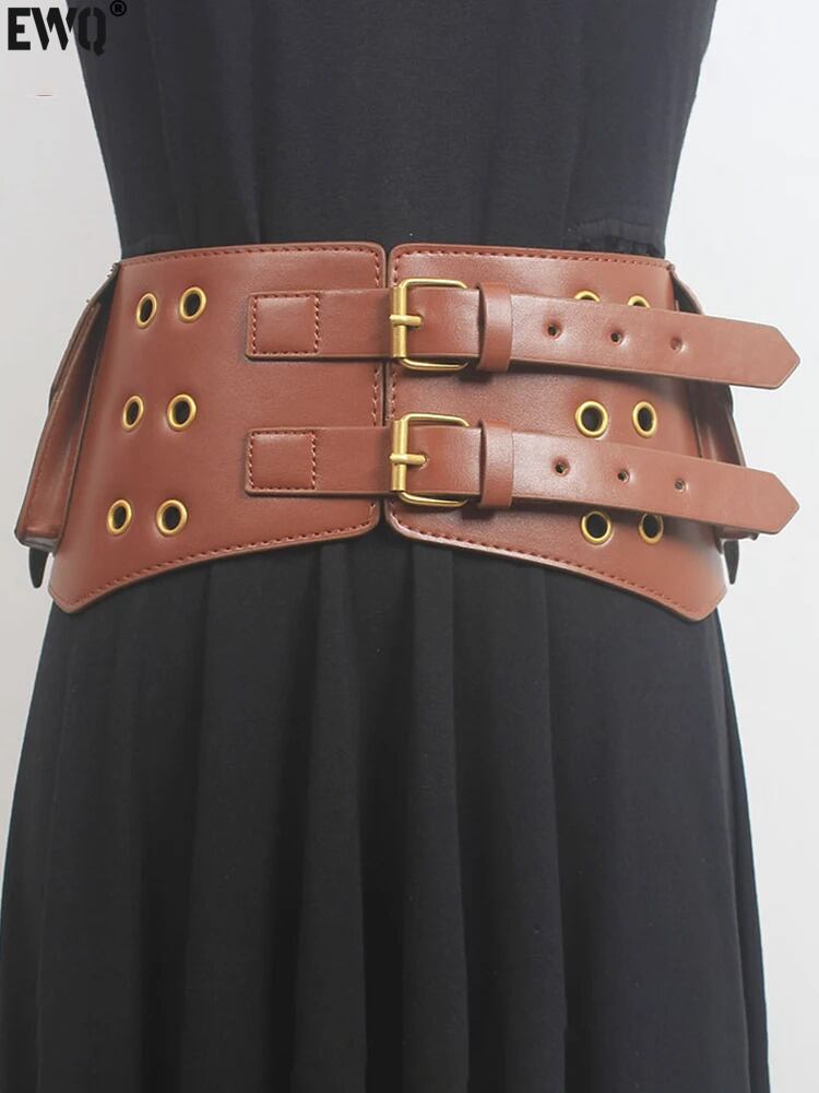 [EWQ] ネクタイデニムスタイル不規則ニードルバックル PU レザーベルトシールサイドパネルウエストバッグ 2024 春秋 U7505 スプリング 春物 オータム 秋物 ハーネス