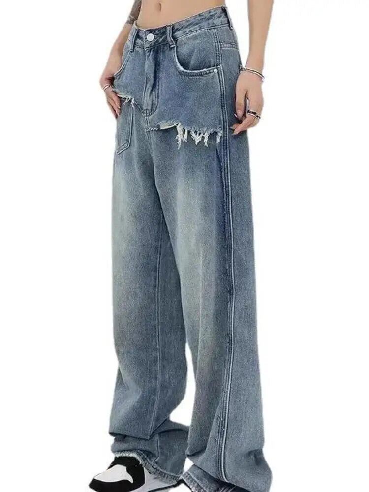 [EWQ] Y2K ウエストパッチワークワイドレッグジーンズストリートストレートレッグモップパンツ 2024 春秋 16U7485 スプリング 春物 オータム 秋物 ワイドパンツ