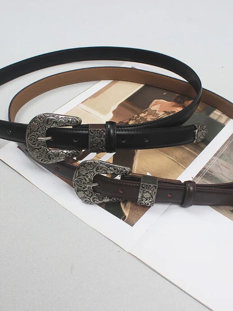 [EWQ] コーヒーカウスキンベルト彫刻シルバーメタルバックル潮ストリートオールマッチロングベルト 2024 春秋 16U7448 スプリング 春物 オータム 秋物 ハーネス 銀