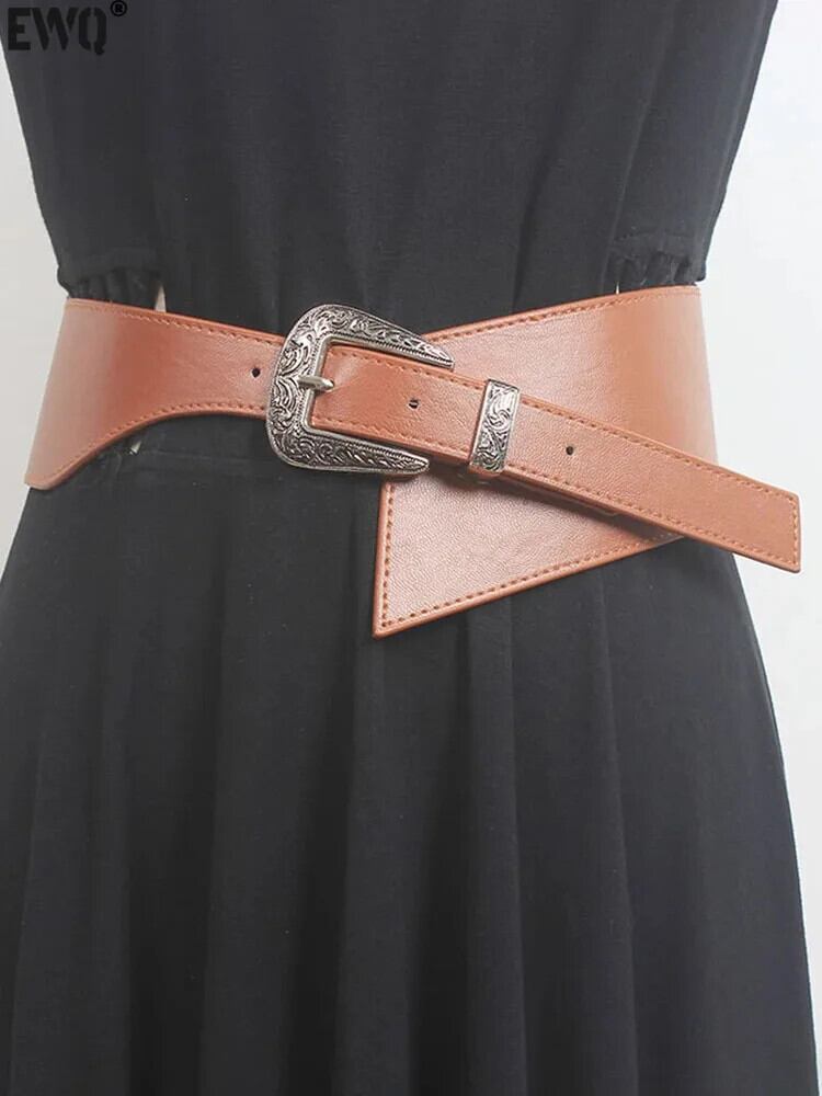 [EWQ] タイド PU レザー ブラック ワイド ウエスト シール ストリート スタイル オールマッチ 斜め針バックル ベルト 2024 春秋 6U7496 スプリング 春物 オータム 秋物 ハーネス