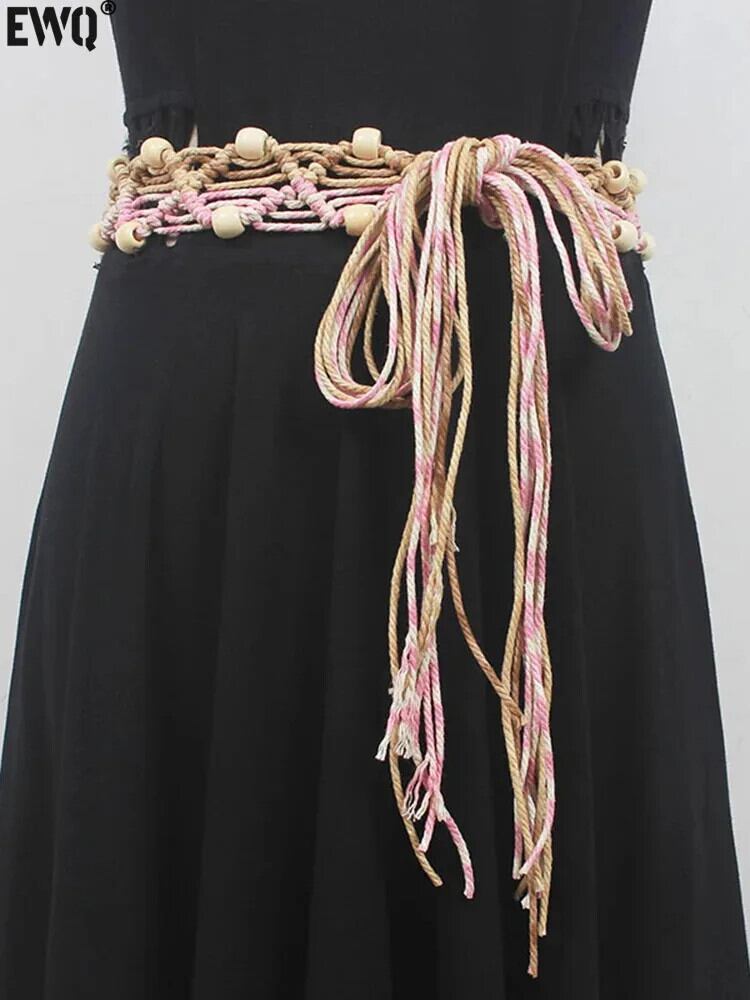[EWQ] 中国スタイル織りノットテルボウワイドウエストバンド潮オールマッチリネンベルト 2024 春秋 6U7439 リボン スプリング 春物 オータム 秋物 ハーネス