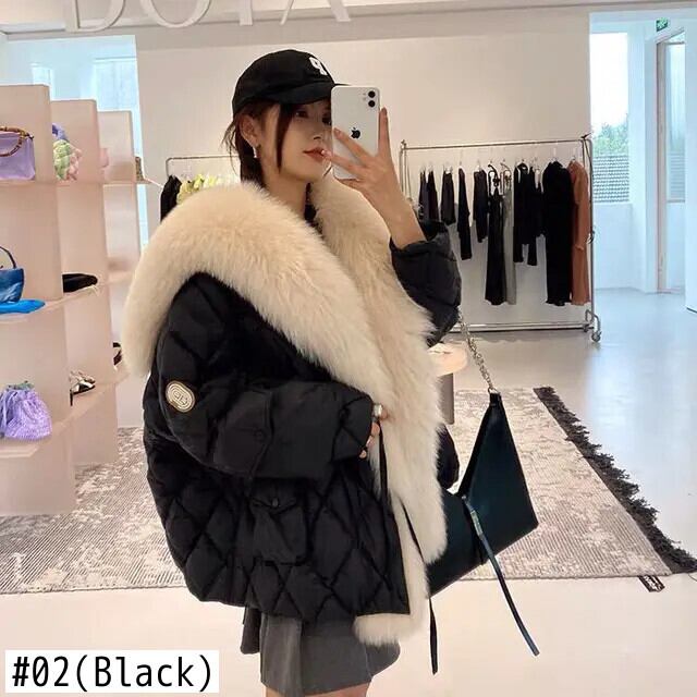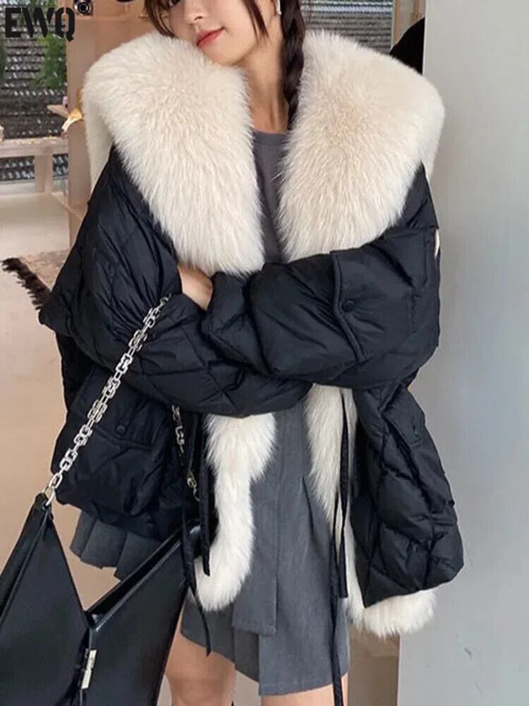 [EWQ] フェイクフォックスカラーダウン中綿コート レディース 厚手 防寒着 ゆったり アウター 2024春夏 16U6974 コットン スプリング 春物 ウィンター 冬物 ファー