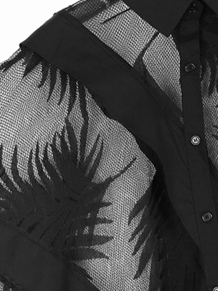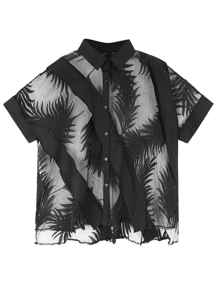[EWQ] ストリート透視レース シングルブレスト 半袖シャツ 大きいサイズ イレギュラー トップス レディース 2024 春夏 7436 ショート ハーフスリーブ スプリング 春物 サマー 夏物