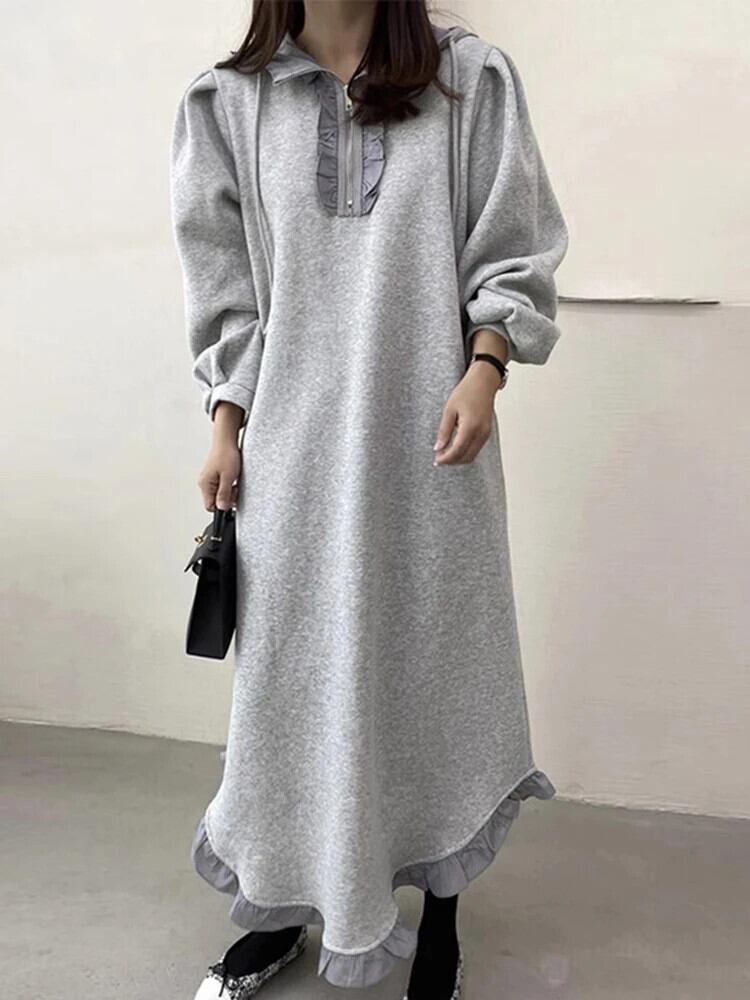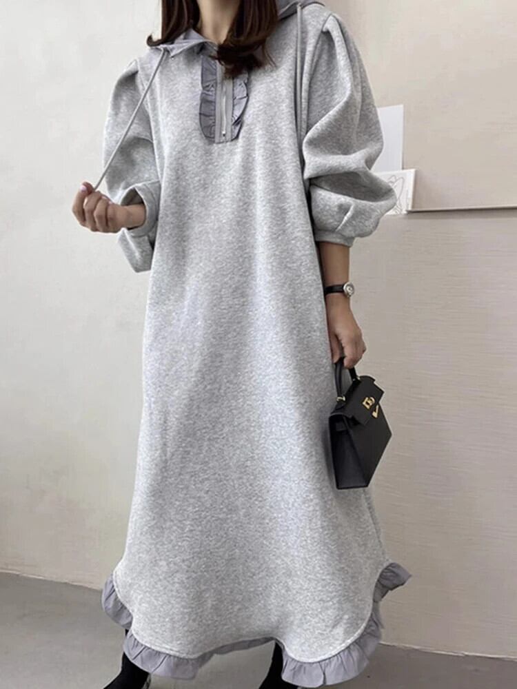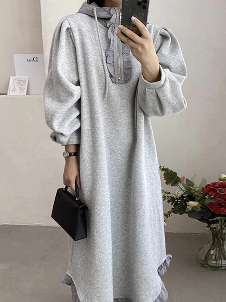 [EWQ] シック 食用木菌エッジ ルーズ プラッシュ 長袖 パーカー ワンピース 2024 春夏 16U7110 ロング スプリング 春物 ウィンター 冬物