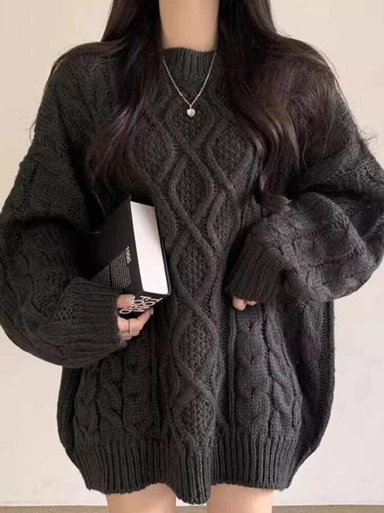 [EWQ] スタイル O ネック肥厚長袖ニットルーズオールマッチセーター 2024 春冬 6U7335 ロング スプリング 春物 ウィンター 冬物 Oネック