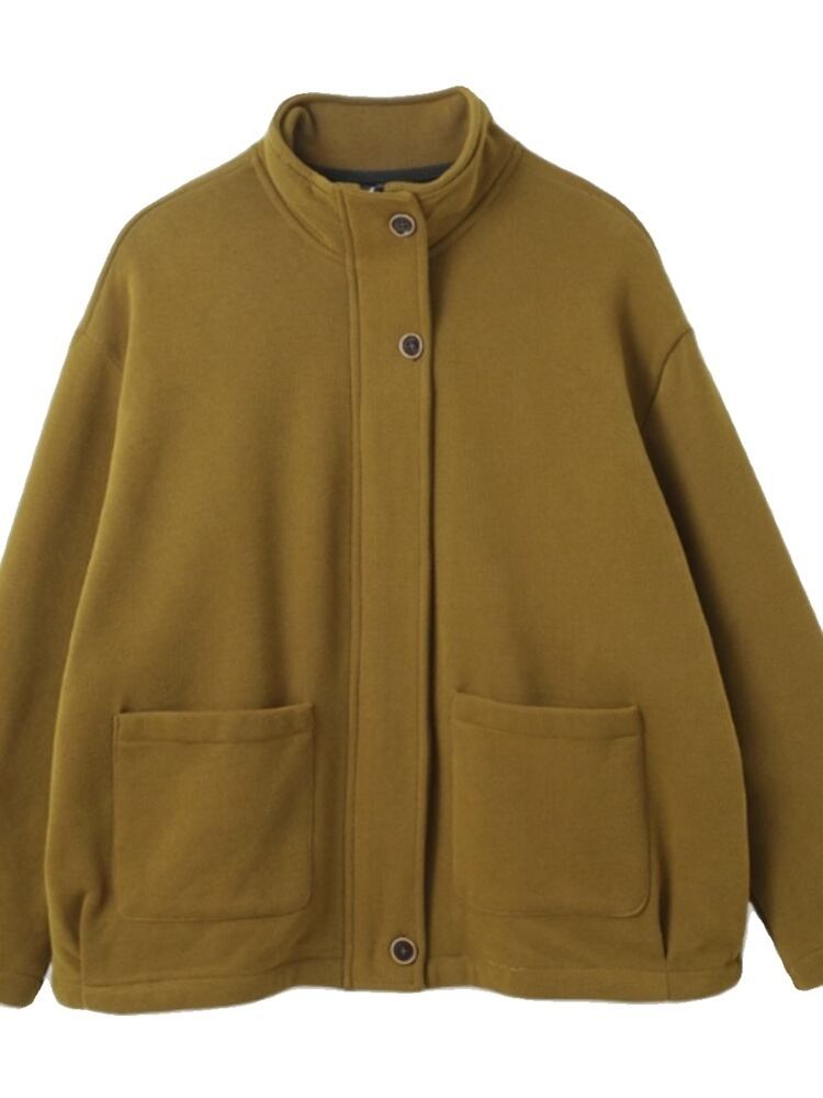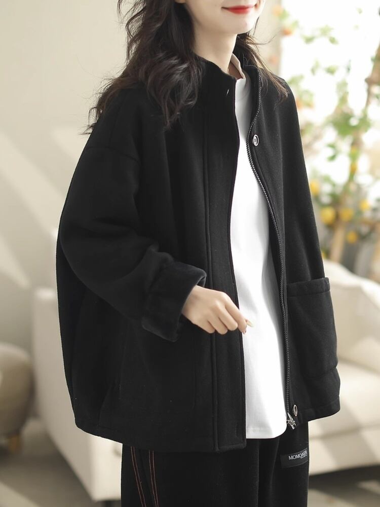 [EWQ] 厚手 暖かい ニット スタンドネック ジッパー ショートコート ジャケット レディース 無地 アウター 秋冬 6U6935 オータム 秋物 ウィンター 冬物 ソリッドカラー