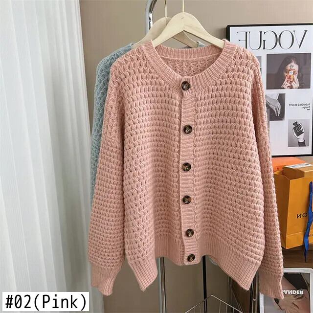 [EWQ] マルチカラーシングルブレスト O ネック秋冬ルーズニットカーディガントップセーターアウター U6101 オータム 秋物 ウィンター 冬物 Oネック