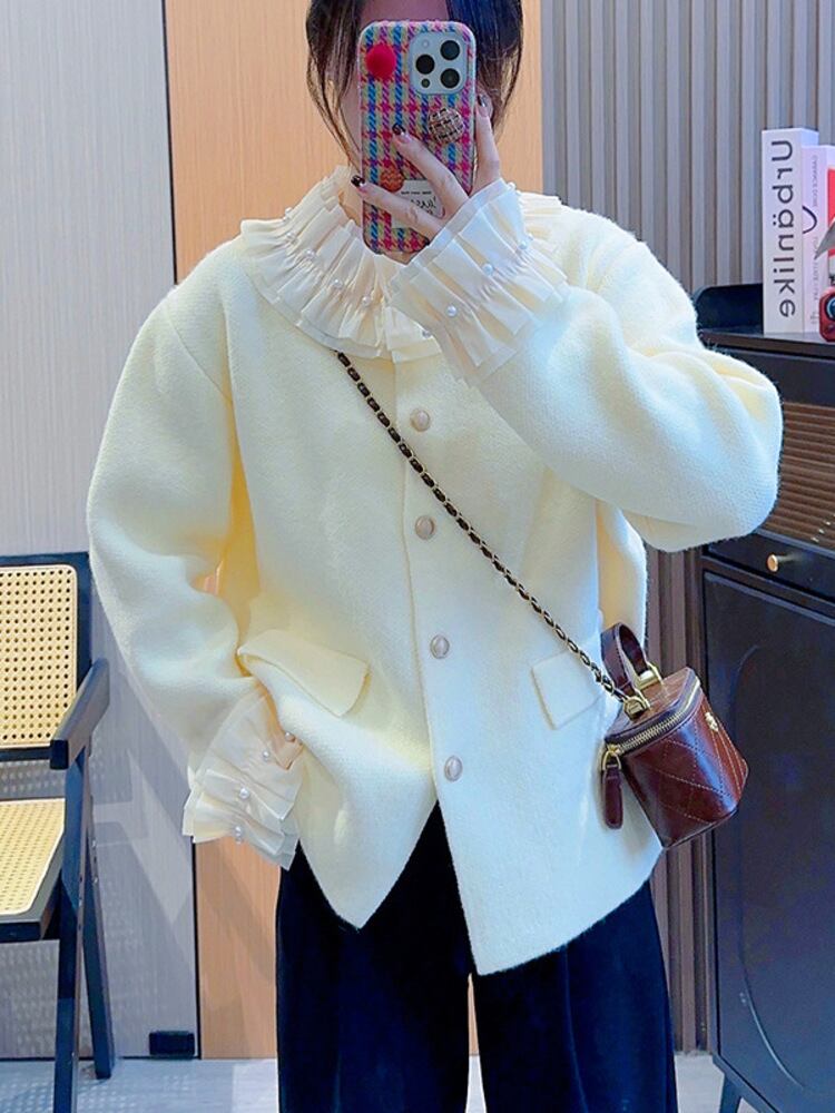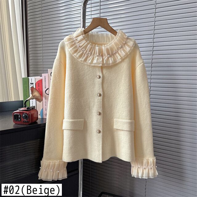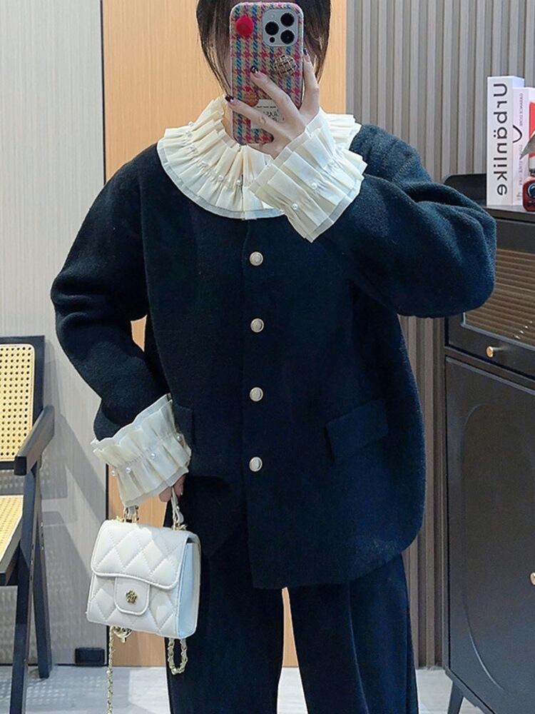 [EWQ] スタイルレースパッチワークニットカーディガンセーター緩い甘いピンクシングルブレストジャケット 2024 春冬 U7303 大人ガーリー スウィート キュート カジュアル スプリング 春物 ウィンター 冬物