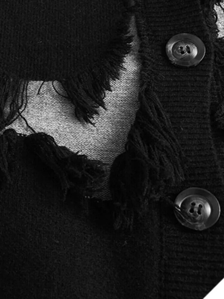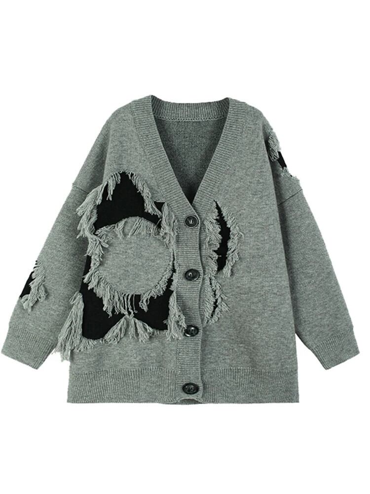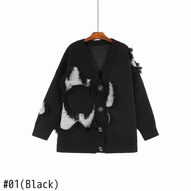 [EWQ] ダメージ加工カーディガンセーターコントラストテルパッチルーズ肥厚針ニット 2024 春冬 7040 スプリング 春物 ウィンター 冬物