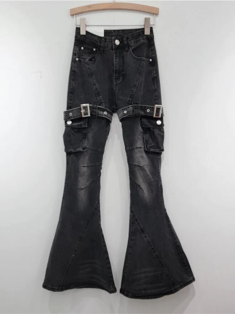 [EWQ] ストリートウォッシュ潮レースアップデニムパンツシックワイドレッグウエストパンツ 2024 春秋 6U7615 スプリング 春物 オータム 秋物 ワイドパンツ