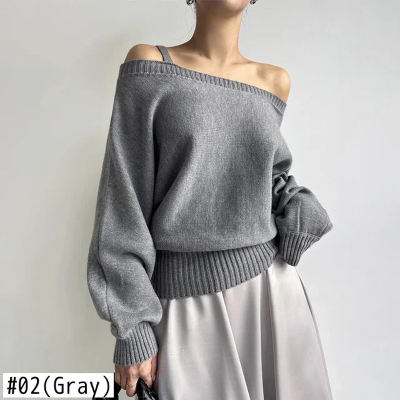 [EWQ] スラッシュネックオフショルダーセクシーセーターバットウィングスリーブルーズプルオーバーニット 2024 春冬 16U4300 スプリング 春物 ウィンター 冬物