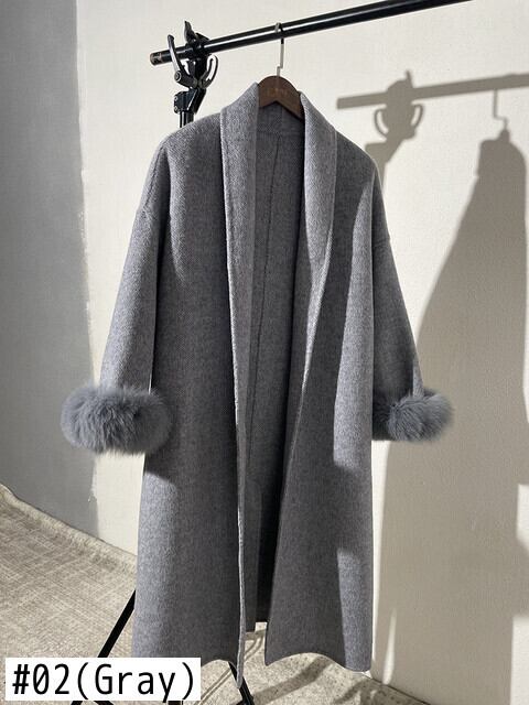 [EWQ] ウール 100% 厚く暖かいグレーロングウールコート秋冬両面ジャケットビッグサイズオーバーコート 23A4493 オータム 秋物 ウィンター 冬物