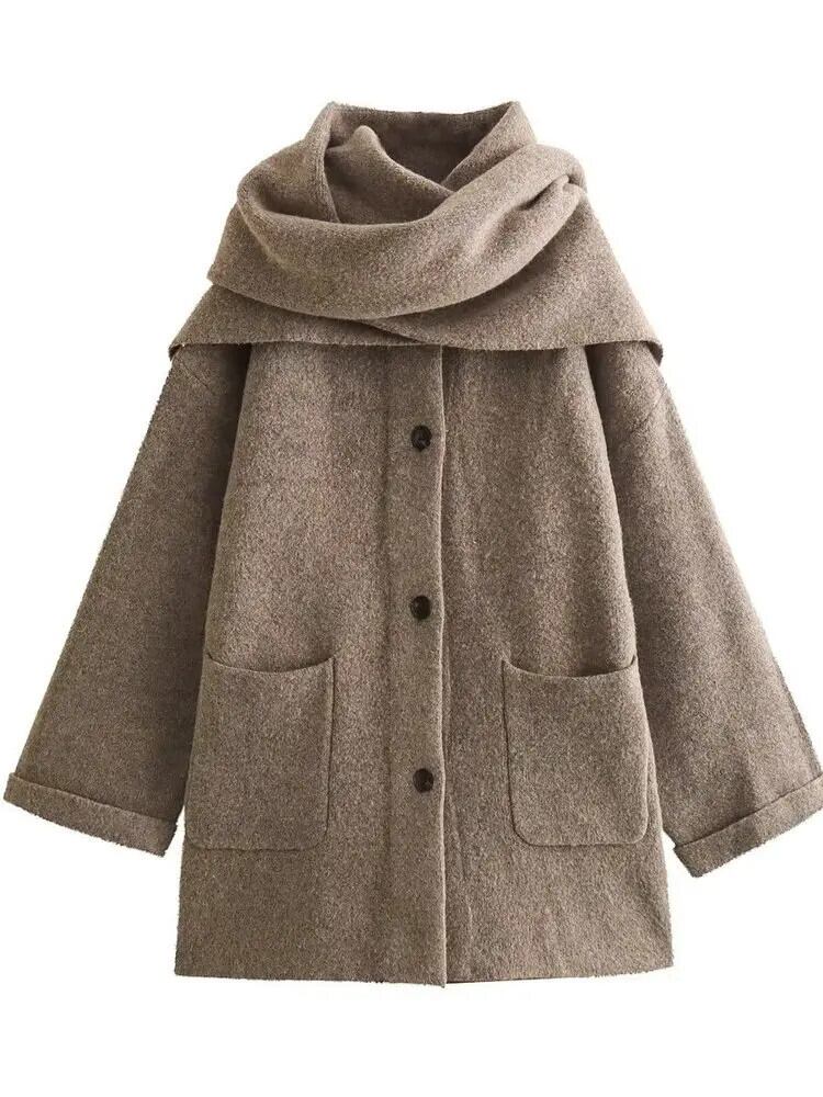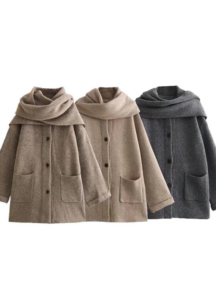 [EWQ] ストリートシングルブレストスカーフショートニットコートルーズ長袖コート 2024 春秋 16U7406 ロング スプリング 春物 オータム 秋物