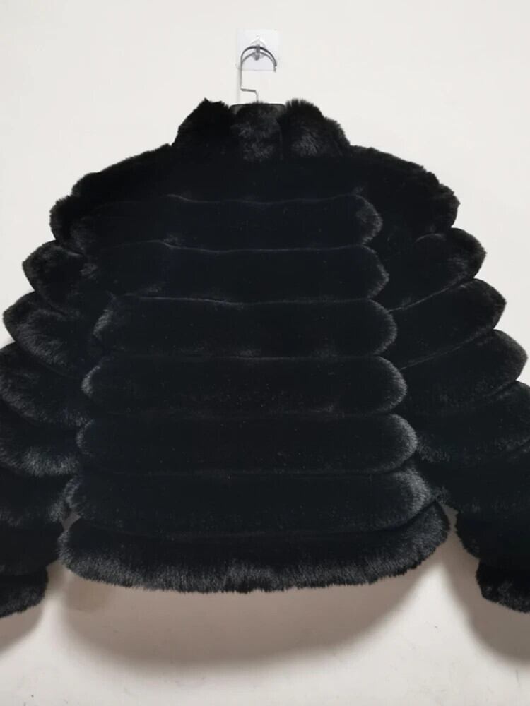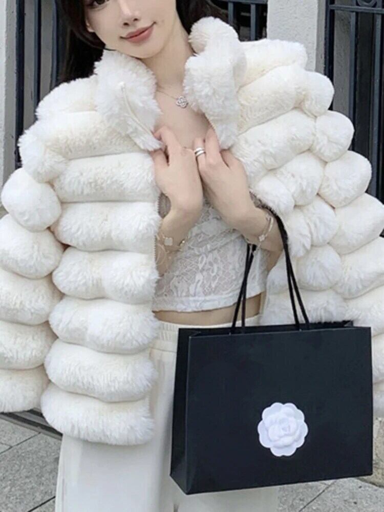 [EWQ] ジッパー スタンドカラー フェイクファー コート レディース ショート ラビット ヘアー 厚手 暖かい アウター トップス 冬 秋 6U6635 オータム 秋物 ウィンター 冬物