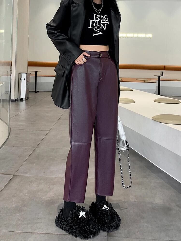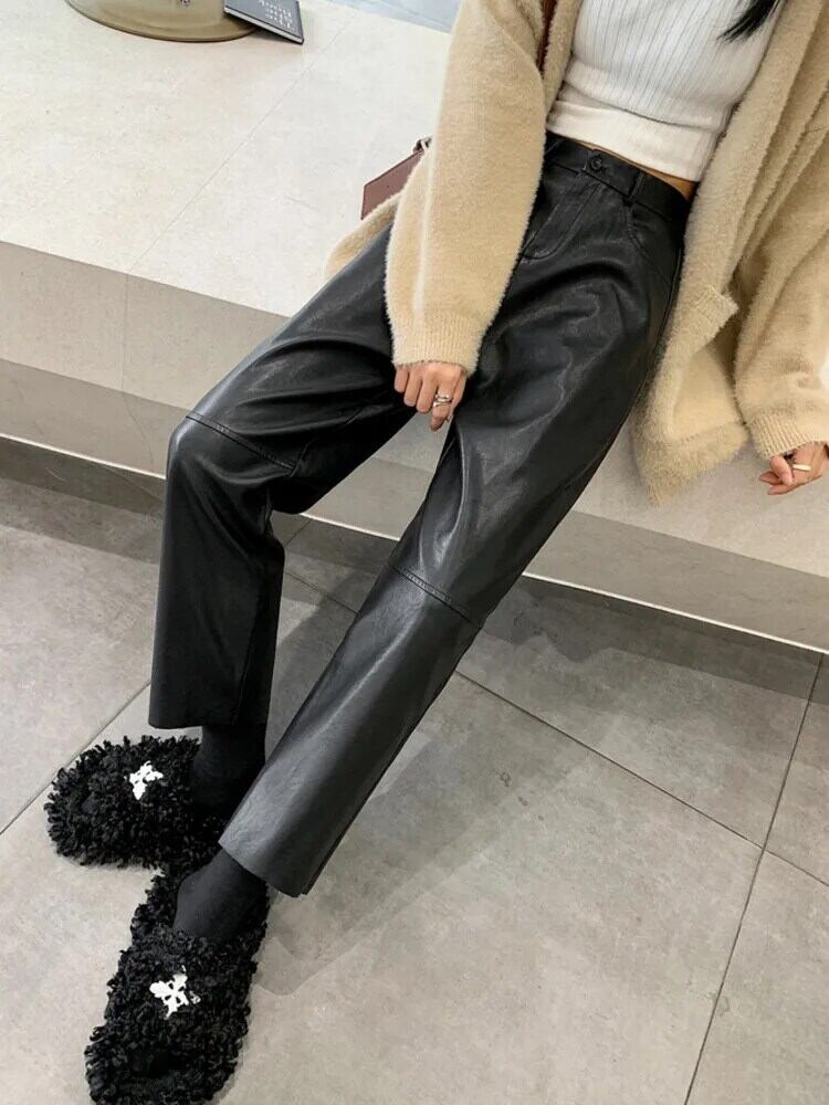 [EWQ] PU レザーストレートレッグアンクル丈パンツストリートオールマッチハーランパンツレディース 2024 春秋 16U7571 スプリング 春物 オータム 秋物