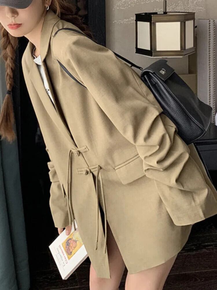 [EWQ] 中国風ダブルボタンルーズスーツコートオールマッチソリッドカラージャケット 2024 春秋 16U7655 スプリング 春物 オータム 秋物