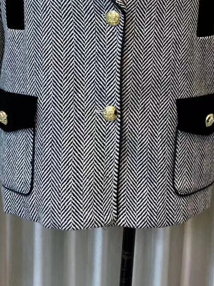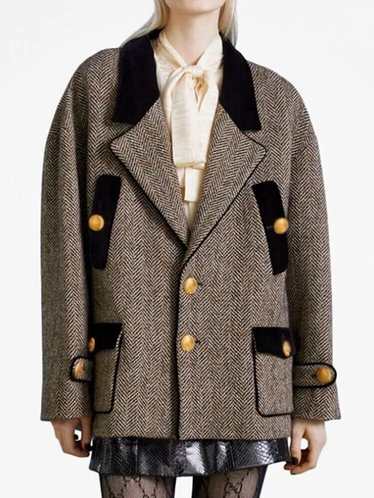 [EWQ] ストリートゴールドボタンヘリンボーンコントラストカラースーツコートレディースポケット暖かいジャケット秋冬 16U6899 オータム 秋物 ウィンター 冬物