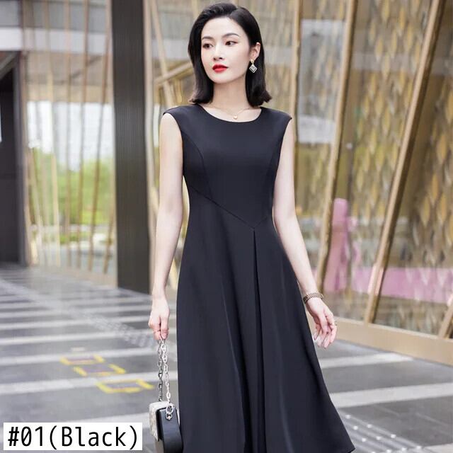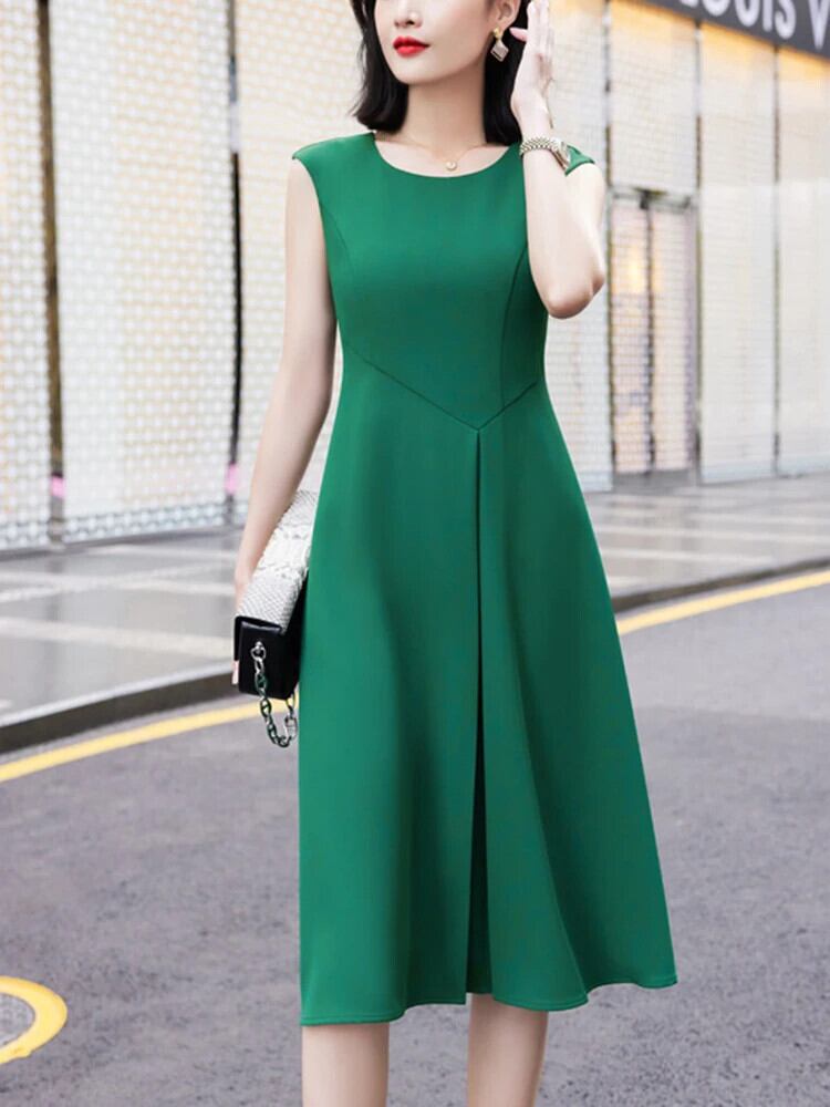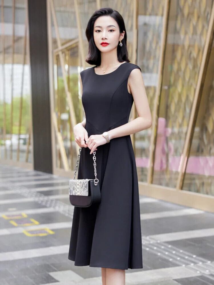 [EWQ] ノースリーブ ソリッド カラー ワンピース きれいめ オールマッチ ミディ丈 スカート レディース 2024 春夏 16U7579 スプリング 春物 サマー 夏物 ソリッドカラー