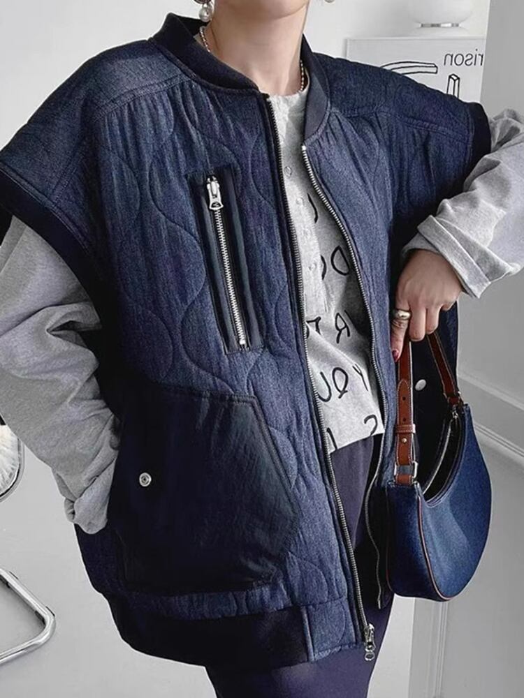[EWQ] スタイルユニークプリントスタンドカラー暖かいベストルーズオールマッチジッパートップ 2024 春秋 U7229 スプリング 春物 オータム 秋物