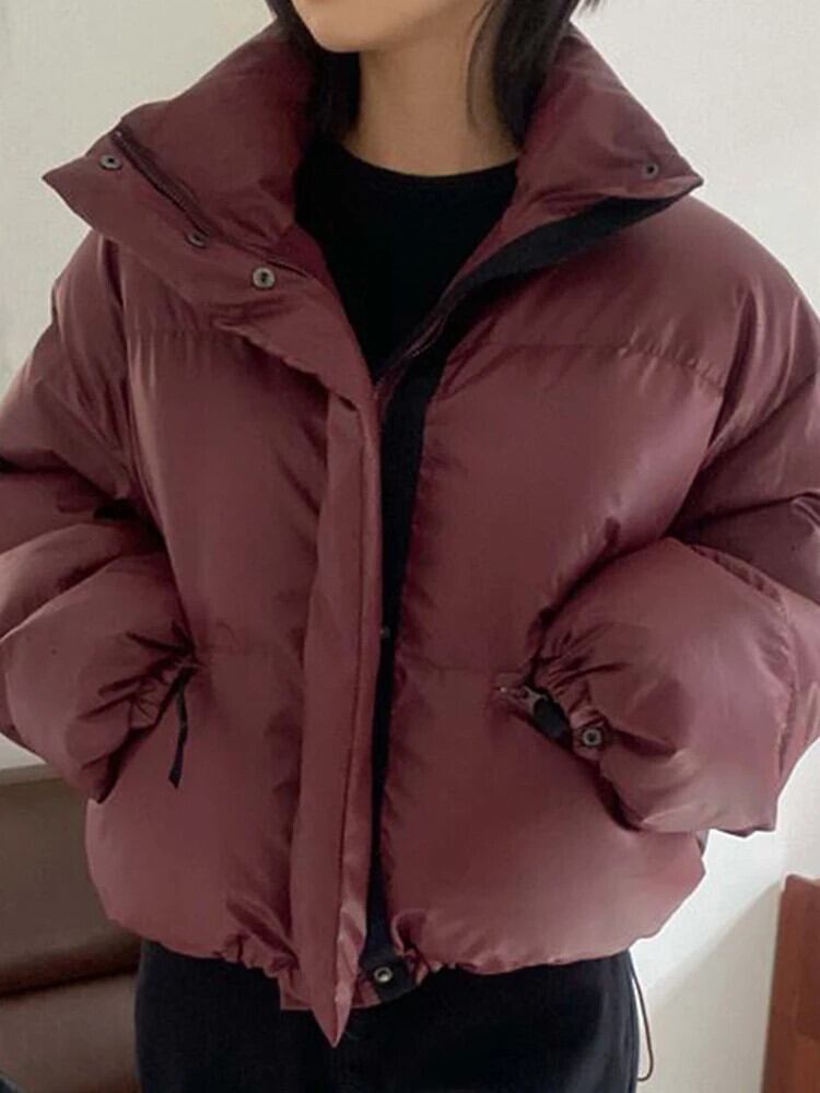 [EWQ] シックスタンドネックジッパージャケット暖かさオールマッチブラックコート春 2024 冬パーカートップス U7104 レッド スプリング 春物 ウィンター 冬物