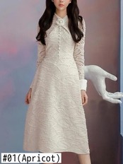 [EWQ] 刺繍レースソリッドカラードレス長袖プリーツパッチワークドレス 2024 春冬 ロング レッド スプリング 春物 ウィンター 冬物