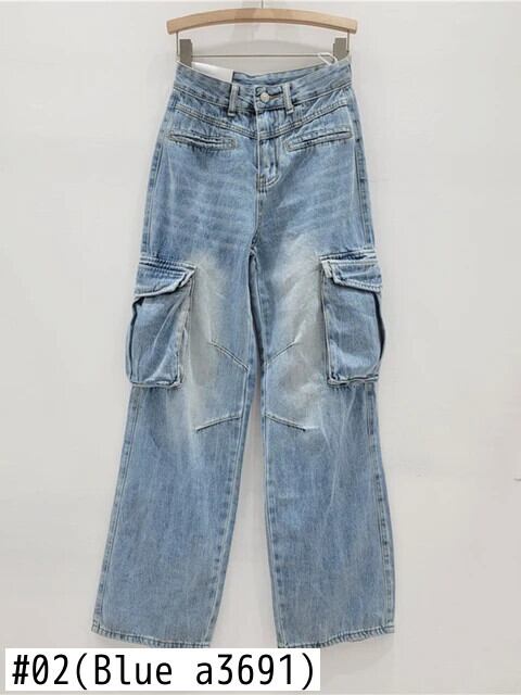 [EWQ] シックウエストストレートレッグマルチポケットジーンズ Y2K ルーズブルーオールマッチパンツ 2024 春秋 7600 スプリング 春物 オータム 秋物 ポケット多め