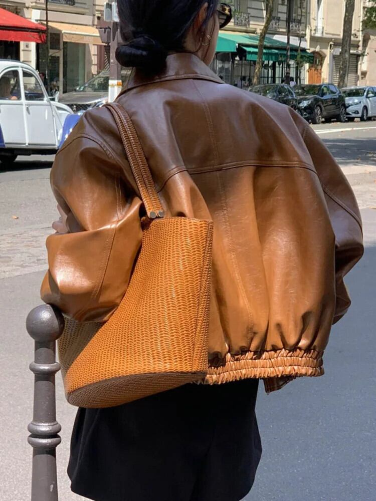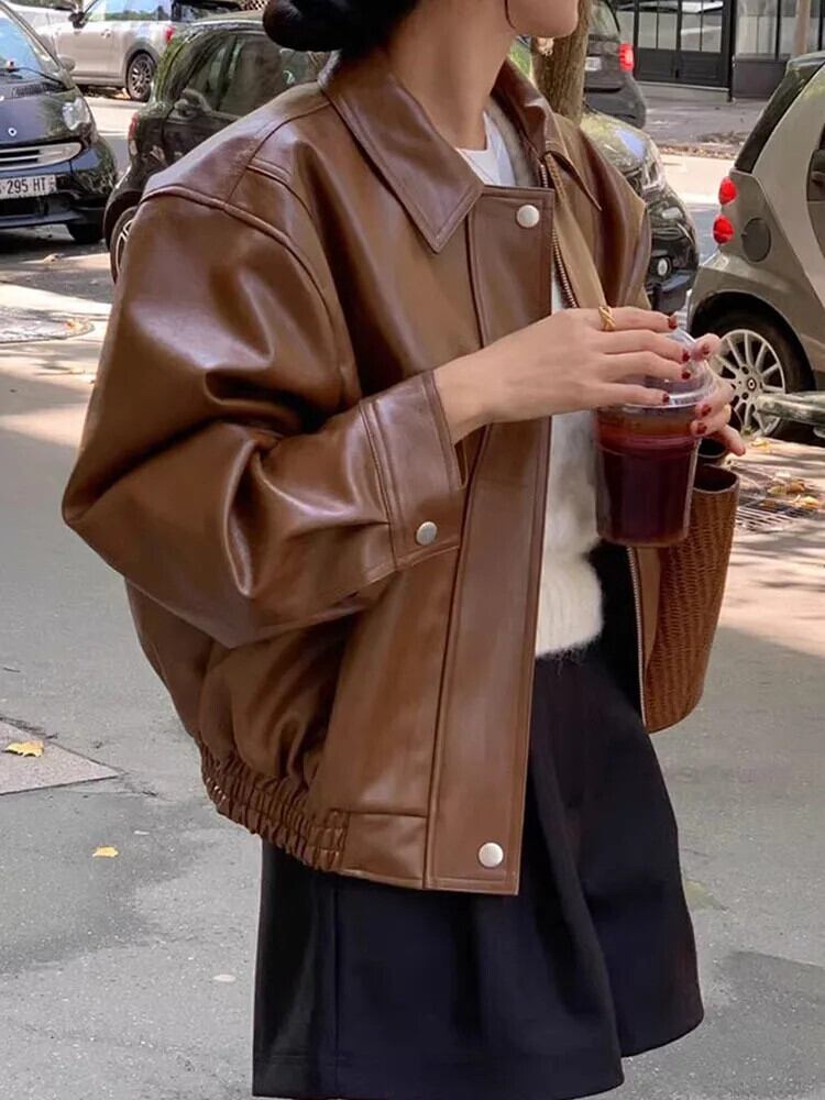 [EWQ] 長袖 ラペル ジッパー ボタン PU レザー レディース コート ジャケット アウター ボンバー 秋冬 16U6128 ロング オータム 秋物 ウィンター 冬物