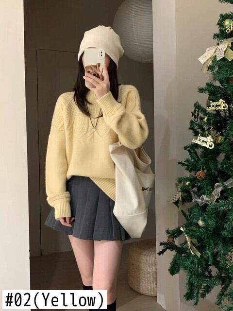 [EWQ] O ネックベーシックプルオーバーニットツイストストライプ厚手暖かい長袖セーター 2024 春夏 16U7090 ロング スプリング 春物 ウィンター 冬物 Oネック