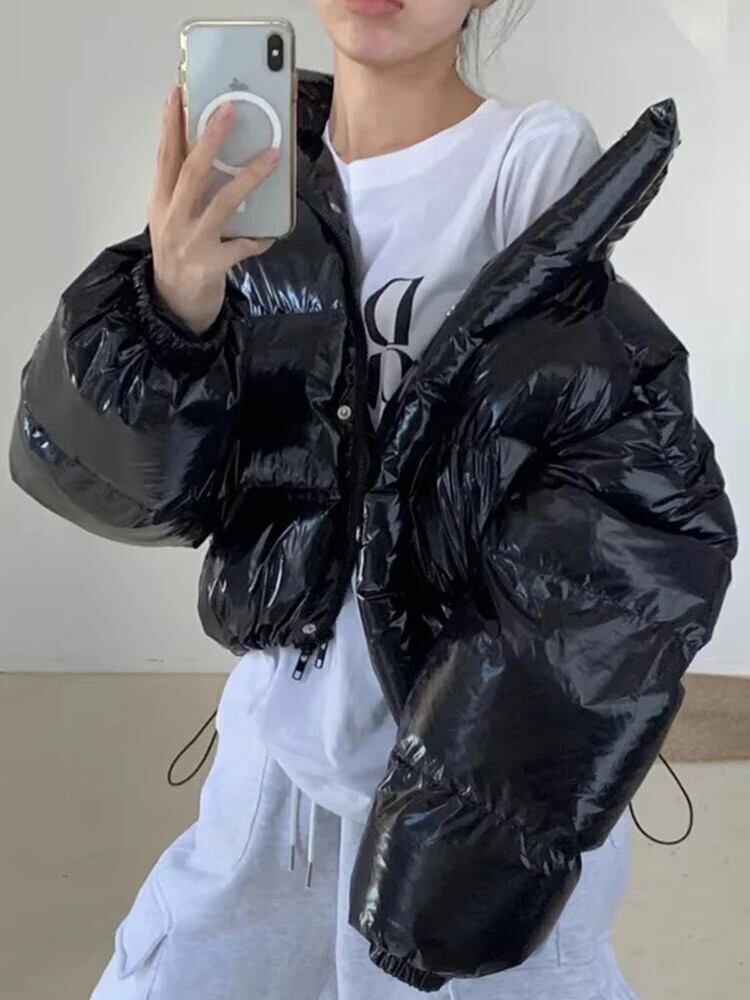 [EWQ] スタンドネック光沢ある暖かいコットンジャケットゆったりオールマッチショートトップスレディース2024春夏16U7112 スプリング 春物 ウィンター 冬物