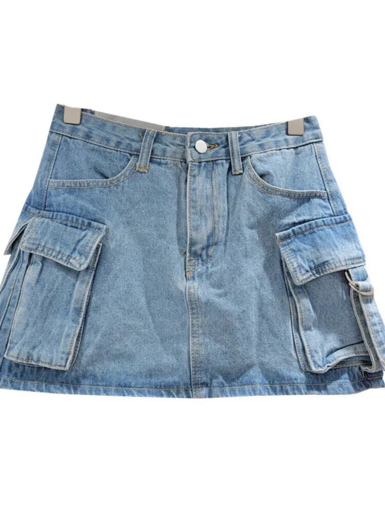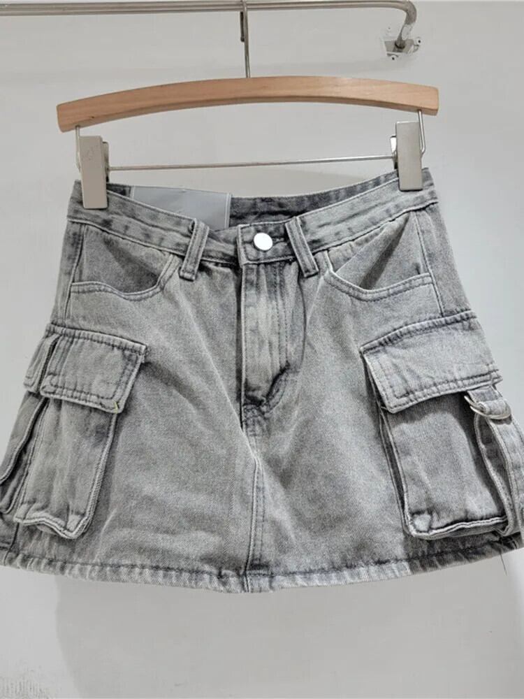 [EWQ] スタイルサファリポケットブルーショーツストリートオールマッチウエスト A ラインパンツ 2024 春秋 16U7616 スプリング 春物 オータム 秋物 ブルマー Aライン