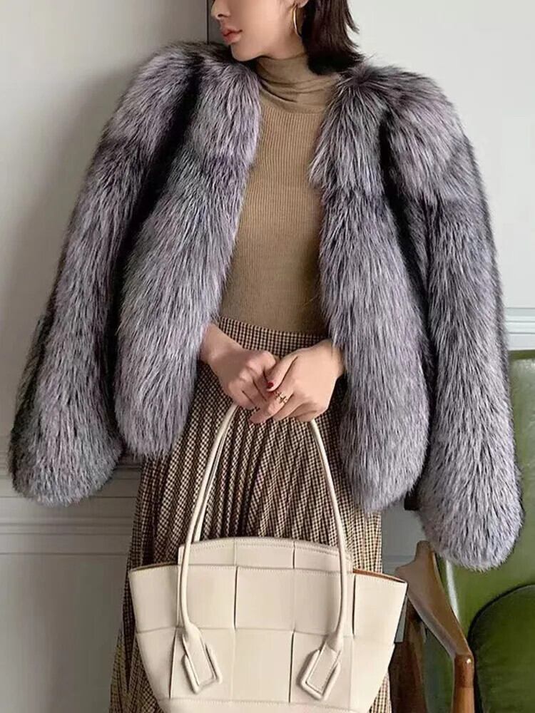 [EWQ] シルバーフォックスファーカーディガンジャケットゆったり厚く暖かい美しいトップコート 2024 春冬 16U6656 スプリング 春物 ウィンター 冬物 銀
