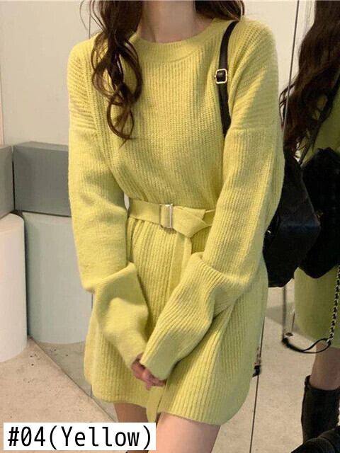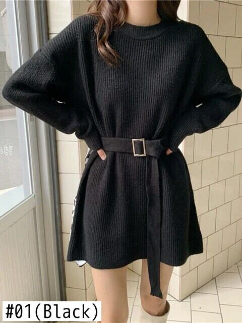 [EWQ] ベルトセーターソフト長袖ルーズプルオーバーニットトップ秋冬潮ニットトップス ロング オータム 秋物 ウィンター 冬物 ハーネス