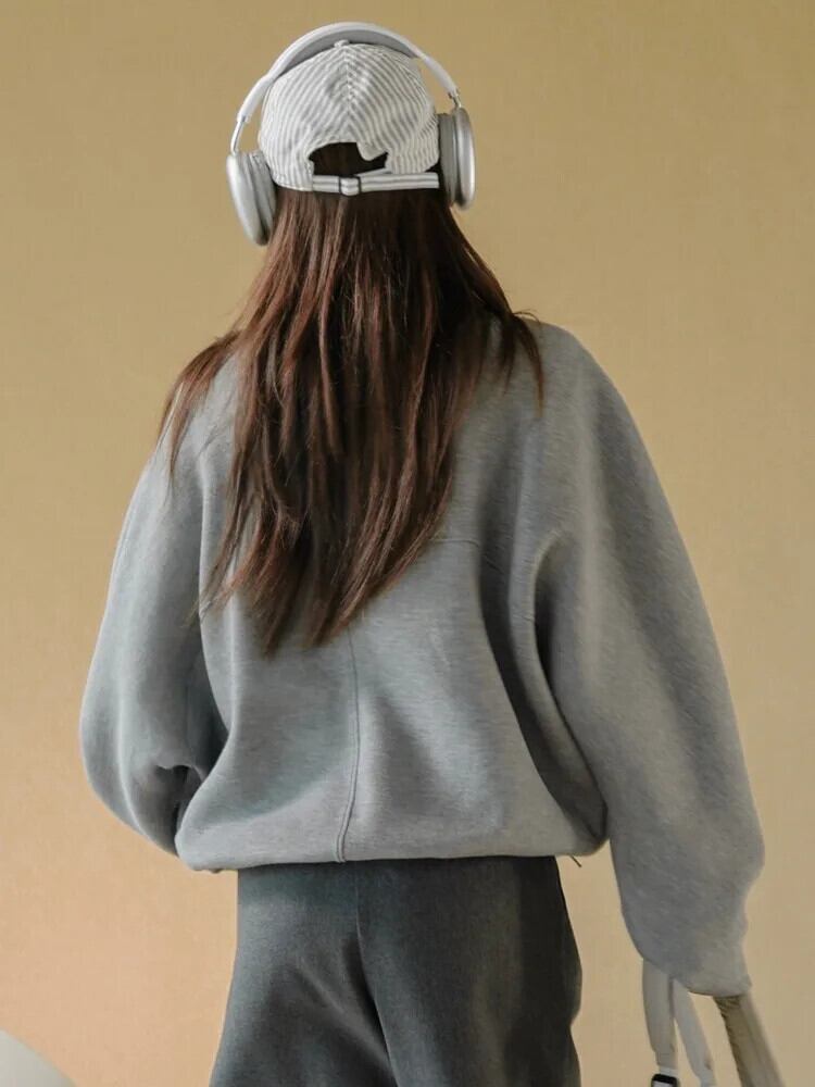 [EWQ] スタイルハーフネックプルオーバー長袖スウェットシャツゆったりオールマッチトップ 2024 春秋 16U7703 ロング スプリング 春物 オータム 秋物