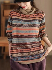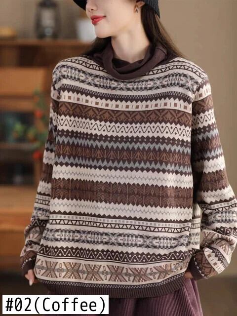 [EWQ] プリントタートルネックプルオーバーニットルーズ長袖コーヒーセーター 2024 春秋 16U7511 ロング スプリング 春物 オータム 秋物