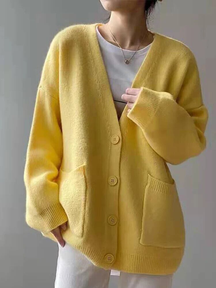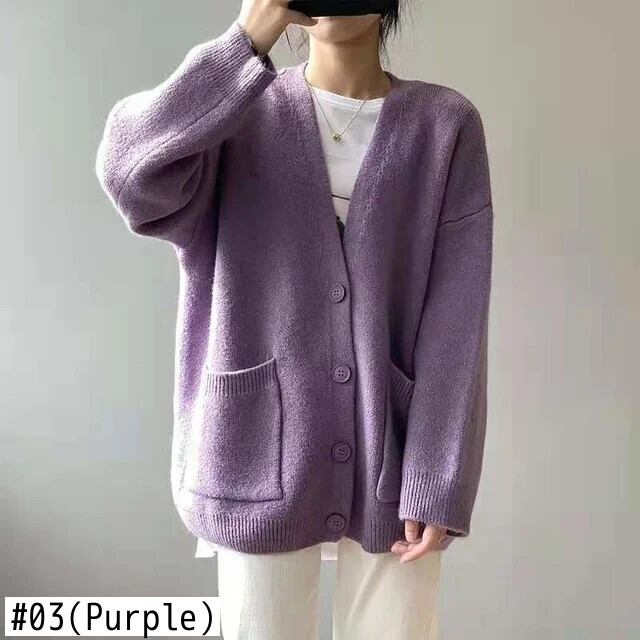 [EWQ] ルーズシングルブレストカーディガンコート長袖秋潮セータージャケット V ネックニットコート ロング オータム 秋物 Vネック