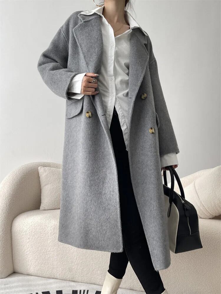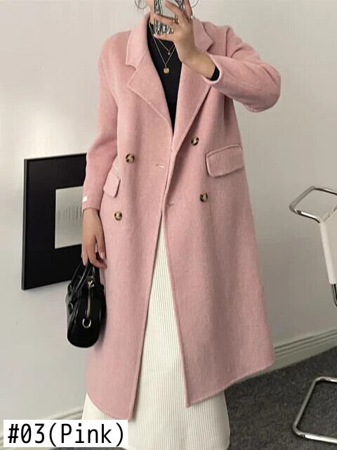 [EWQ] 気質ラペルカラー ボタン ポケット 両面ウール コート シンプル レディース アウター 秋冬 トップス 16U6681 オータム 秋物 ウィンター 冬物