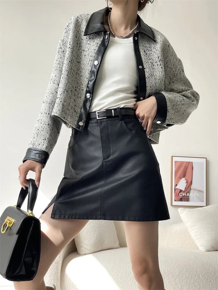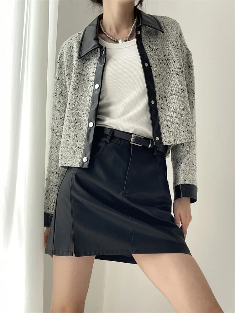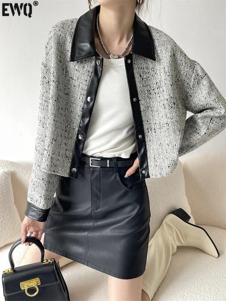 [EWQ] コントラストカラー シングルブレスト ショート ジャケット スプライドラペル コート レディース トップス 秋冬 16U6682 オータム 秋物 ウィンター 冬物