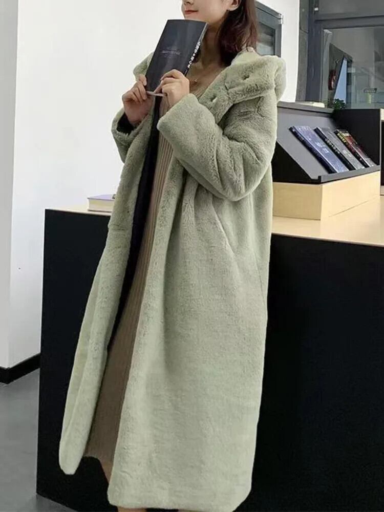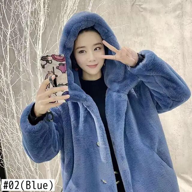 [EWQ] シングルブレスト フード付き フェイクファー ルーズ 膝丈 コート レディース ぬいぐるみ 防寒着 2024 春夏 16U6970 スプリング 春物 ウィンター 冬物