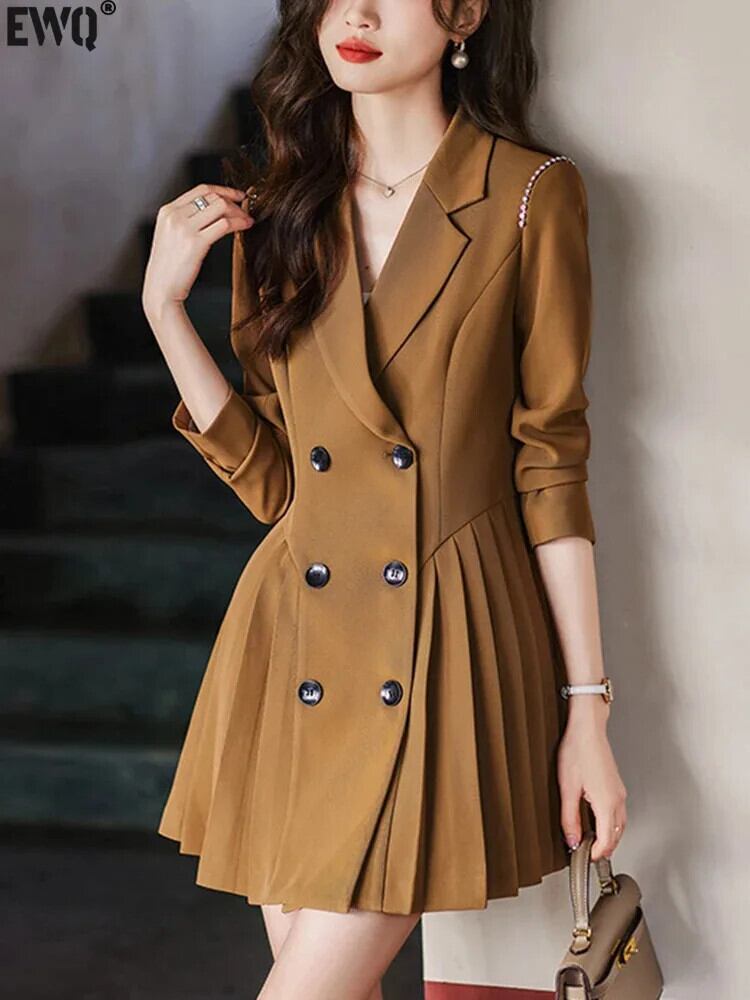 [EWQ] イングランドスタイルミニマリストプリーツショートドレスオールマッチブレザードレス 2024 春夏 16U7578 スプリング 春物 サマー 夏物 ヨーロピアン
